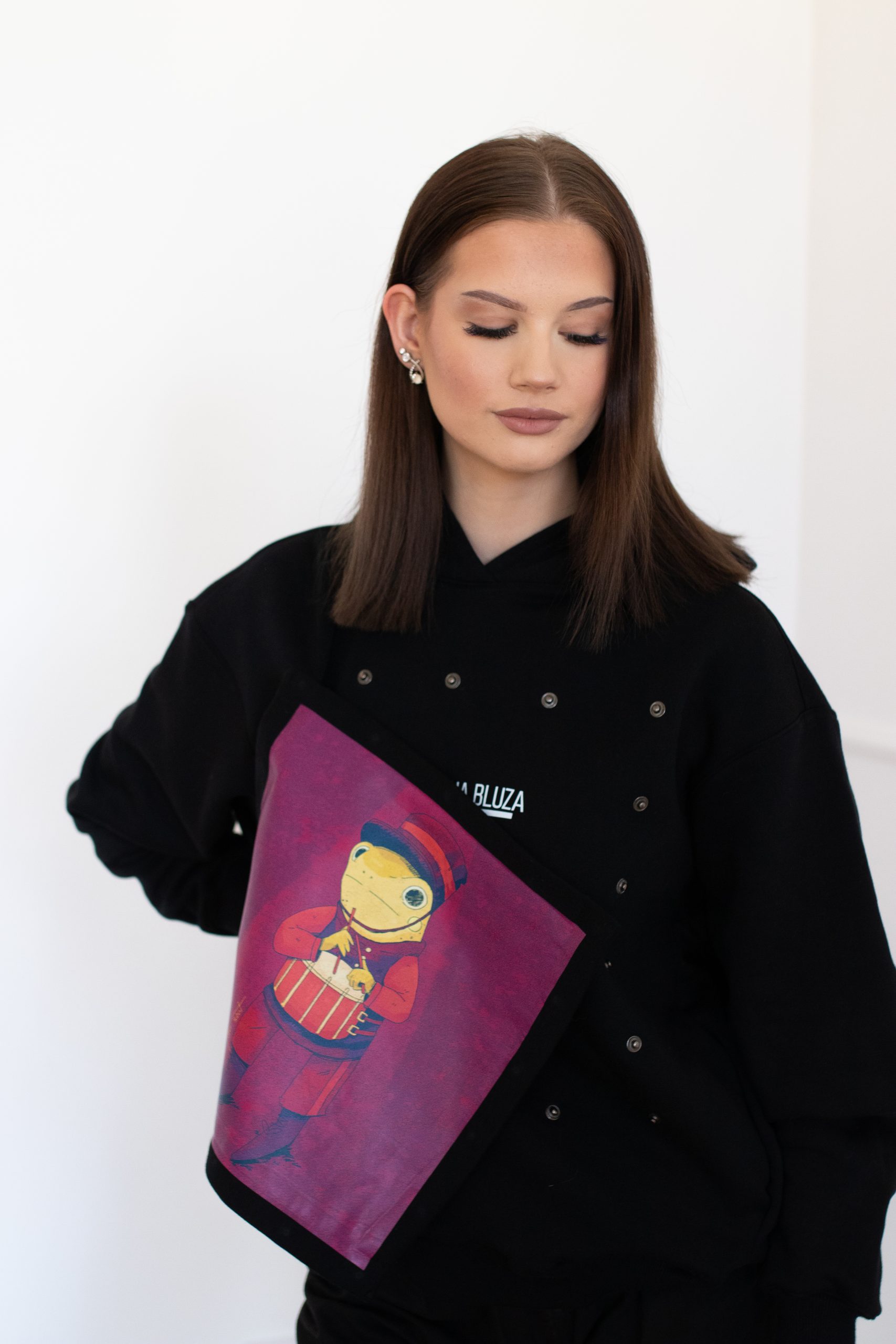 Wymienne nadruki pozwalają w kilka sekund zmienić wygląd bluzy i dopasować ją do swojego stylu. Każdy element mocowany jest na solidne napy, dzięki czemu możesz swobodnie tworzyć nowe kombinacje, łączyć motywy i personalizować bluzę bez ograniczeń. To praktyczne rozwiązanie, które łączy funkcjonalność, estetykę i pełną swobodę wyrażania siebie.
