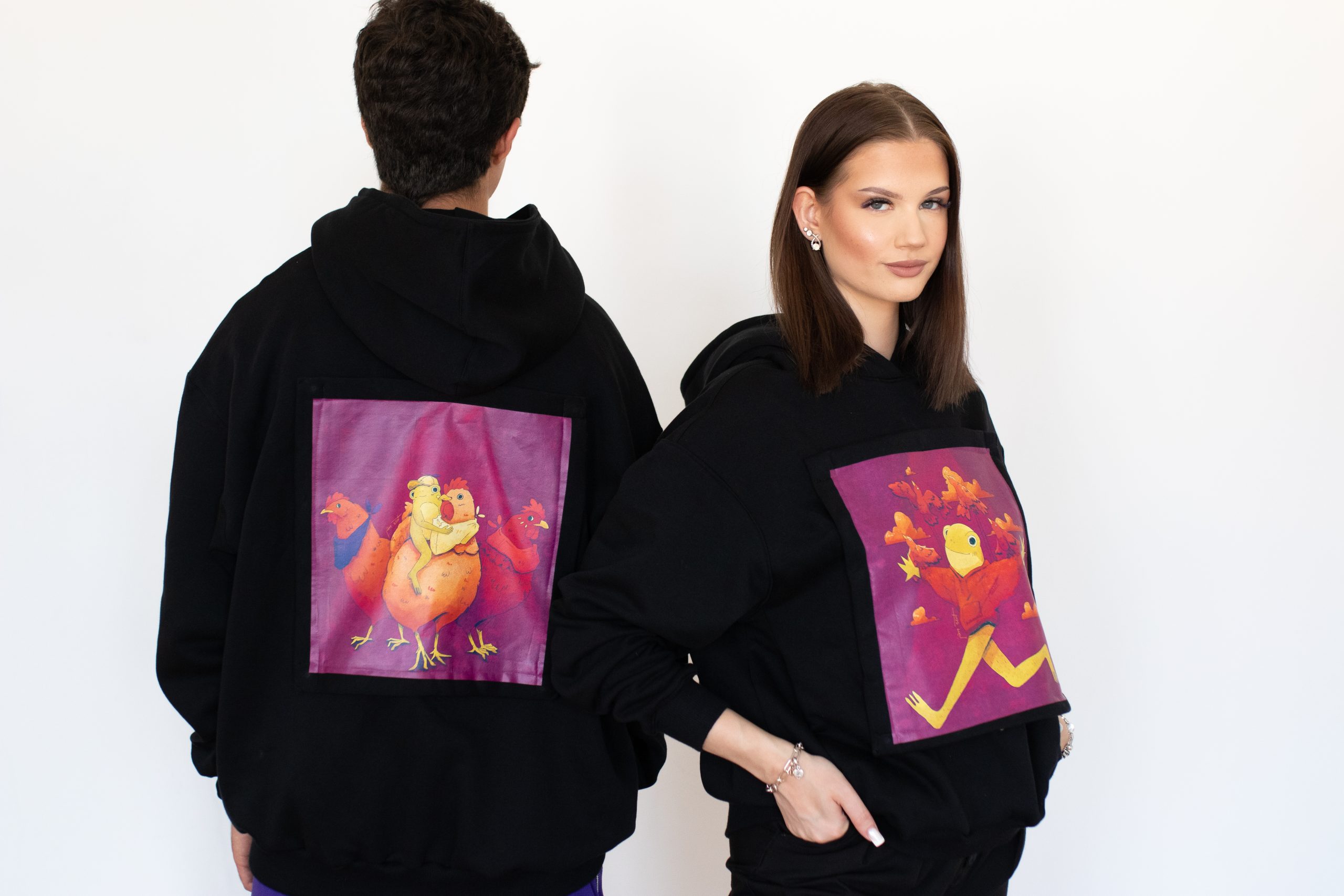 Wymienne nadruki pozwalają w kilka sekund zmienić wygląd bluzy i dopasować ją do swojego stylu. Każdy element mocowany jest na solidne napy, dzięki czemu możesz swobodnie tworzyć nowe kombinacje, łączyć motywy i personalizować bluzę bez ograniczeń. To praktyczne rozwiązanie, które łączy funkcjonalność, estetykę i pełną swobodę wyrażania siebie.